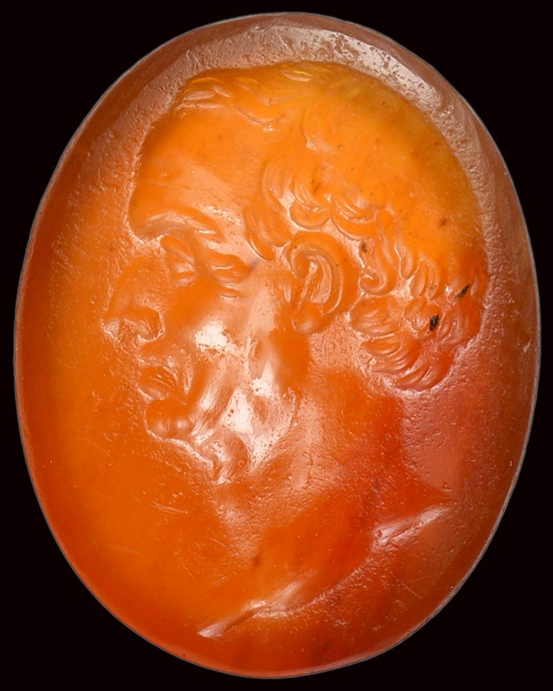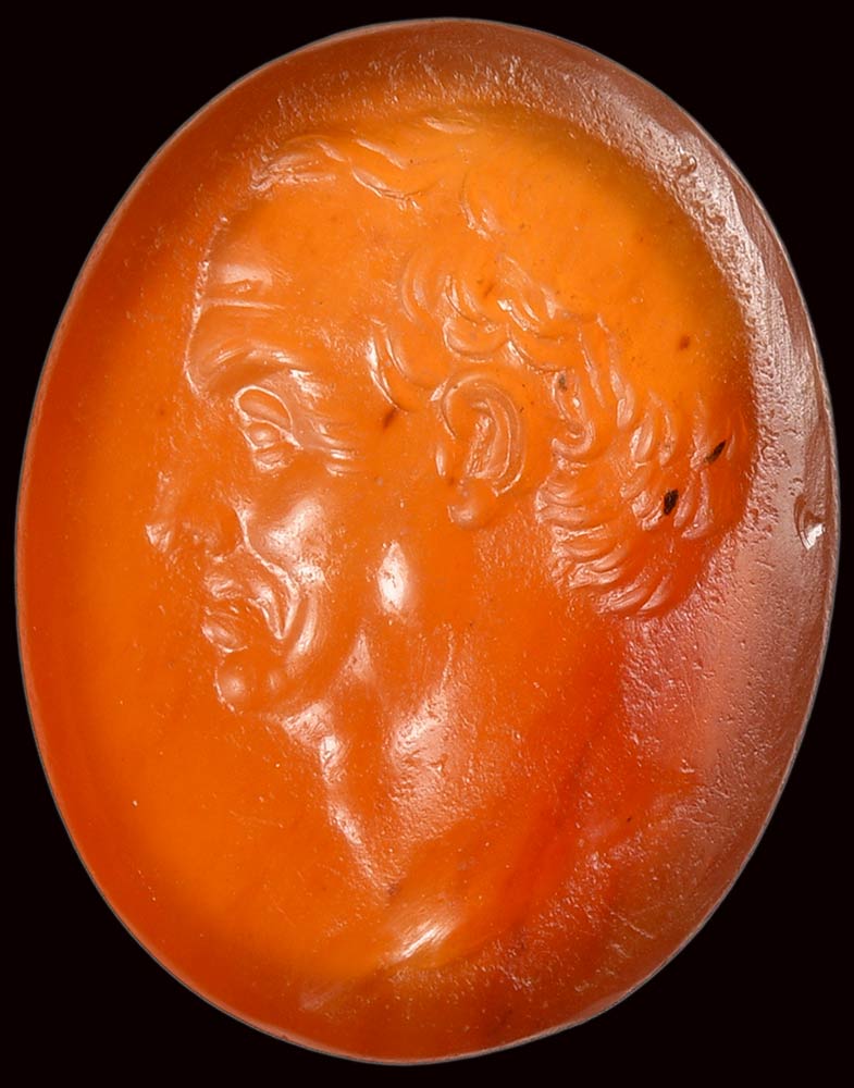 A fine roman carnelian intaglio. Portrait of Maecenas.