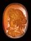 A very fine late hellenistic carnelian intaglio. Bust of Bacchante.
