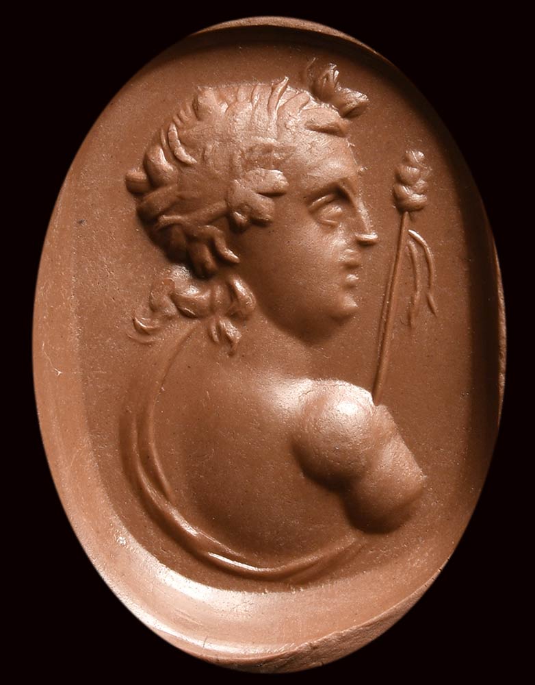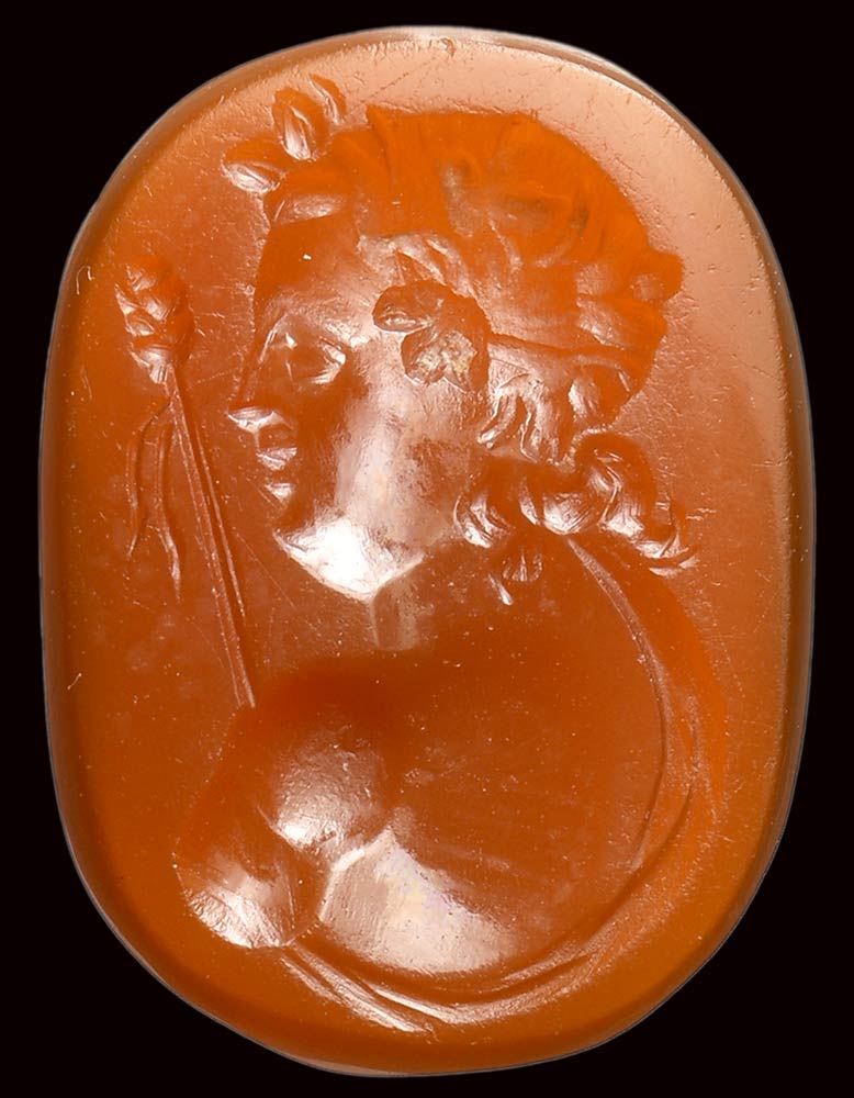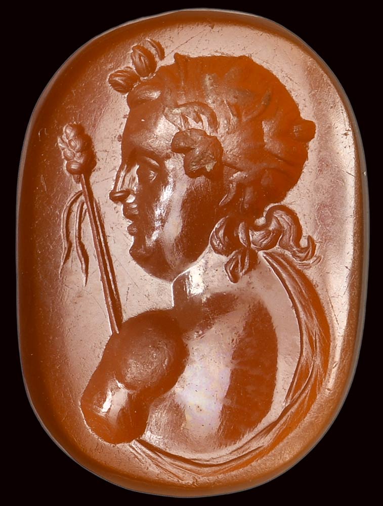 Lot 181 | A roman sard intaglio. Dionysos bust.