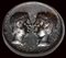 Two faced male busts of young characters, with short hair. Use of globular elements for the face's details ( eyes, nose, lips, chin, ears). Wear marks.