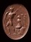 She has fled to the altar and is near to embracing the palladion. Ajax stands beside her in the act of take Kassandra by the hair and holding his shield in the left arm (the sword stuck in his side?). Kassandra is shown in back view, with head and limbs turned in profile; a himation covers the lower part of her body. Ajax, shown in front view, is nude and wears an helmet. The statue of Athena has a girded peplos, with aegis, a helmet and shield, and brandishes her spear. Groundline. Slight wear marks. The stone is set in an ancient gold ring. Very fine condition. Rare.