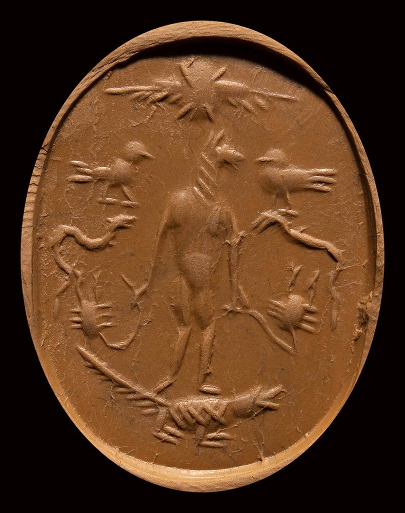 Lot 211 | A large roman magical lapis lazuli intaglio. Anubis.