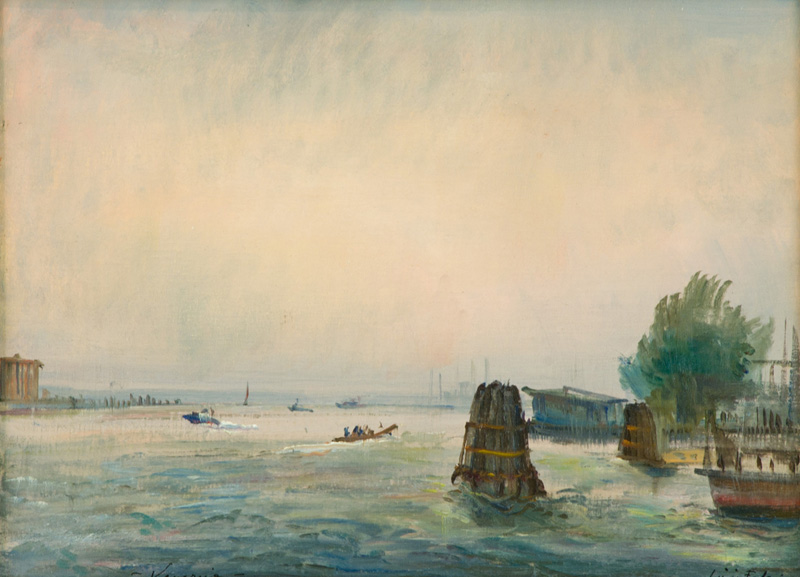 Luigi Falai Venezia Olio su cartone telato, cm. 30x40 Firma in basso a destra, titolo in basso a sinistra. Sul verso: firma e titolo. Certificato di Provenienza "Galleria Capricorno", Vigevano, PV, su foto.