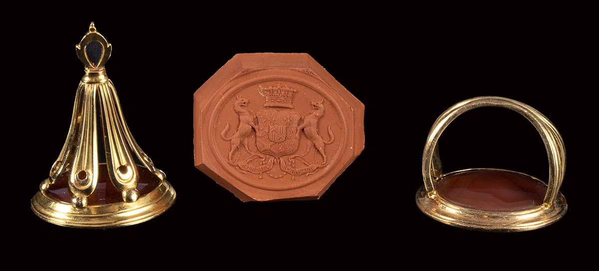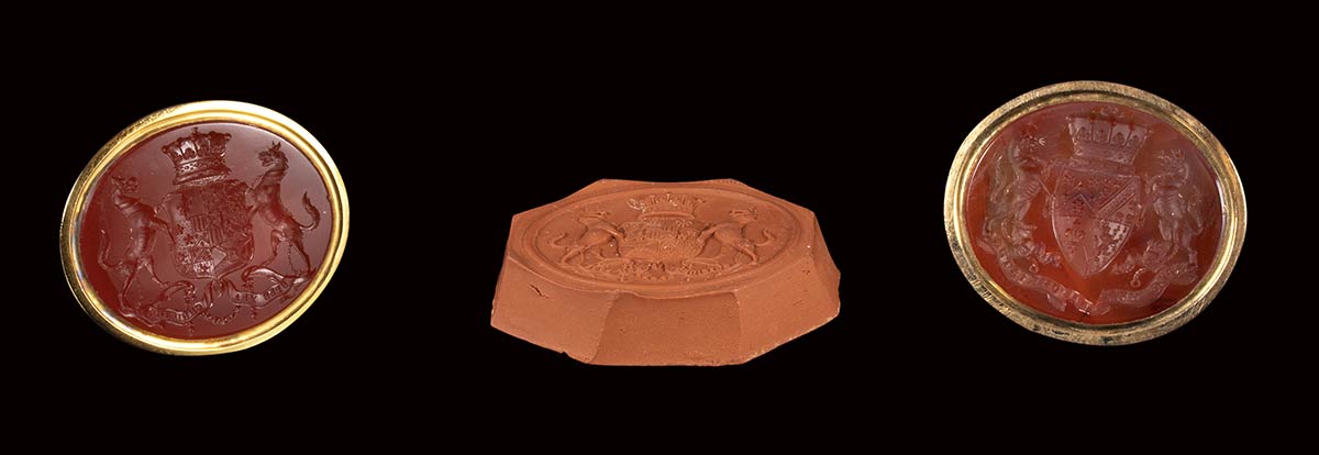 Lot 328 | Two fine carnelian intaglios mounted as seals. Coat of Arms of the 1st Earl of Lucan.