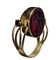 A neo-classical glass impression set in a modern gold swivel ring
