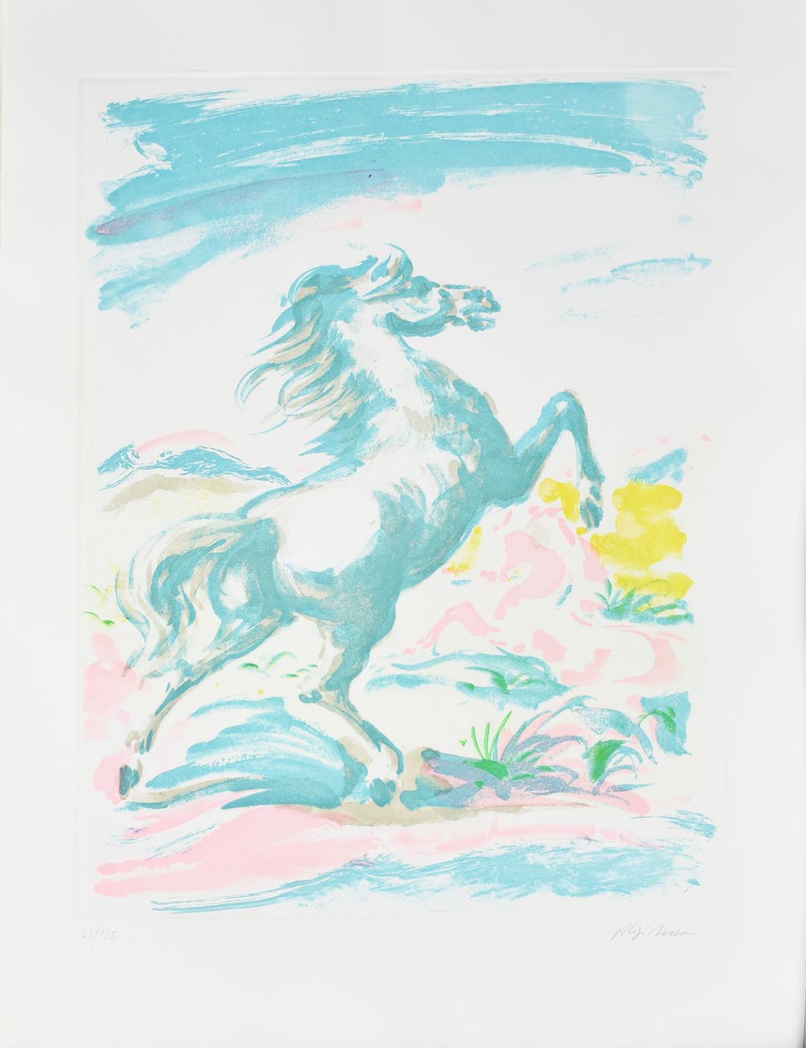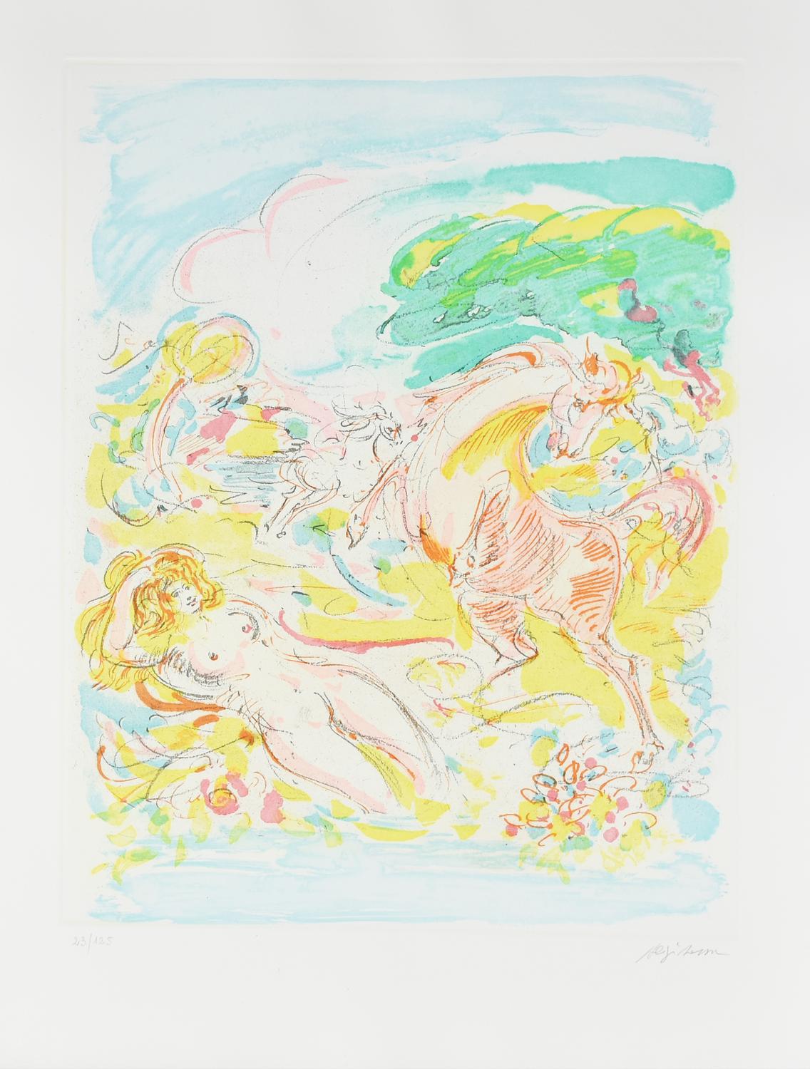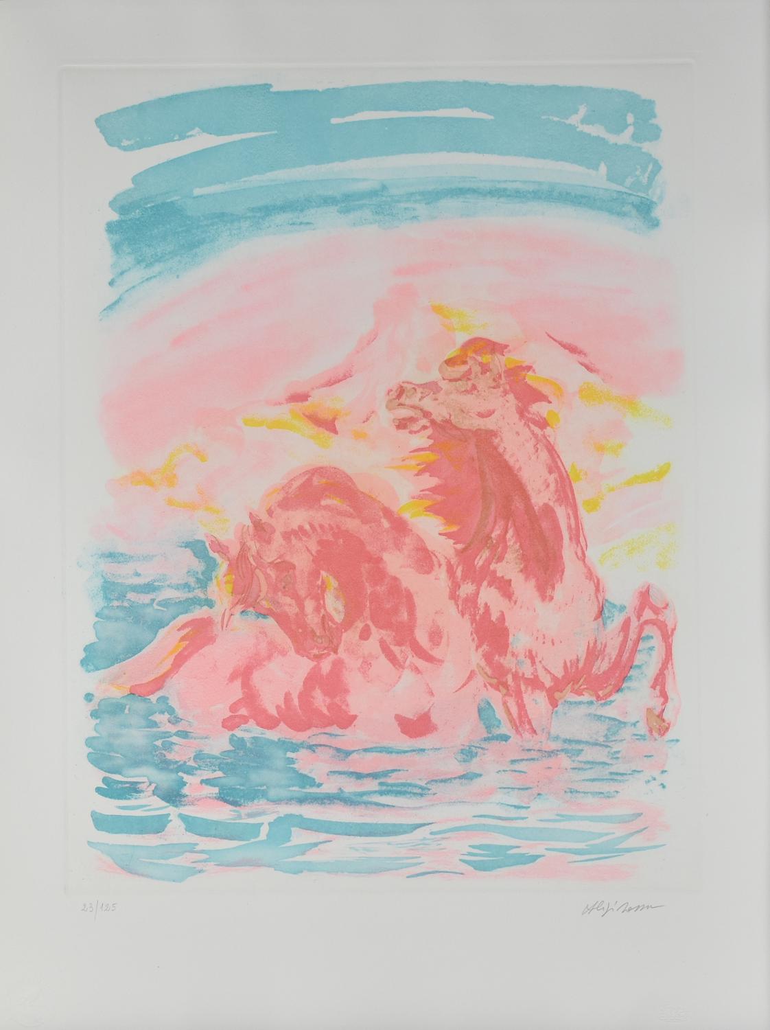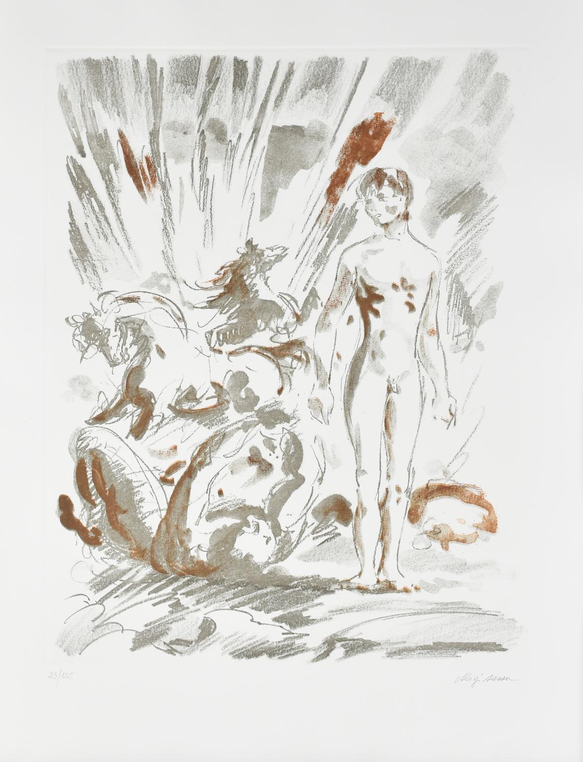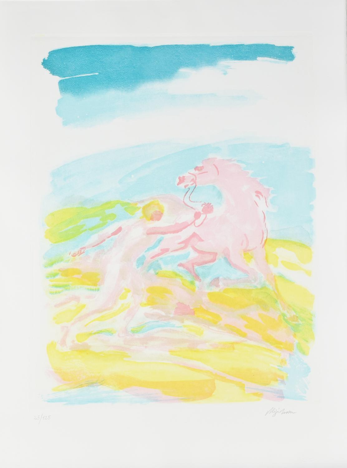 Aligi Sassu MANUSCRIPTUM cartella con cinque acqueforti-acquatinte, battuta...