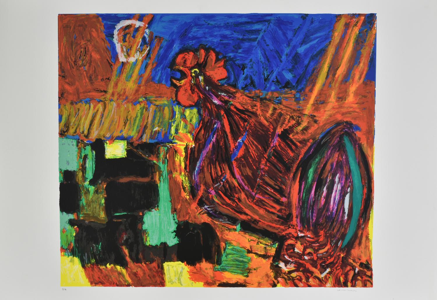 Bruno Cassinari IL CANTO DEL GALLO litografia su carta Fabriano, cm 50x70;...