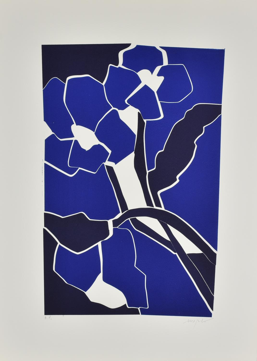 Ugo Nespolo FIORI BLU incisione su carta, battuta cm 51x32,5, su foglio cm...