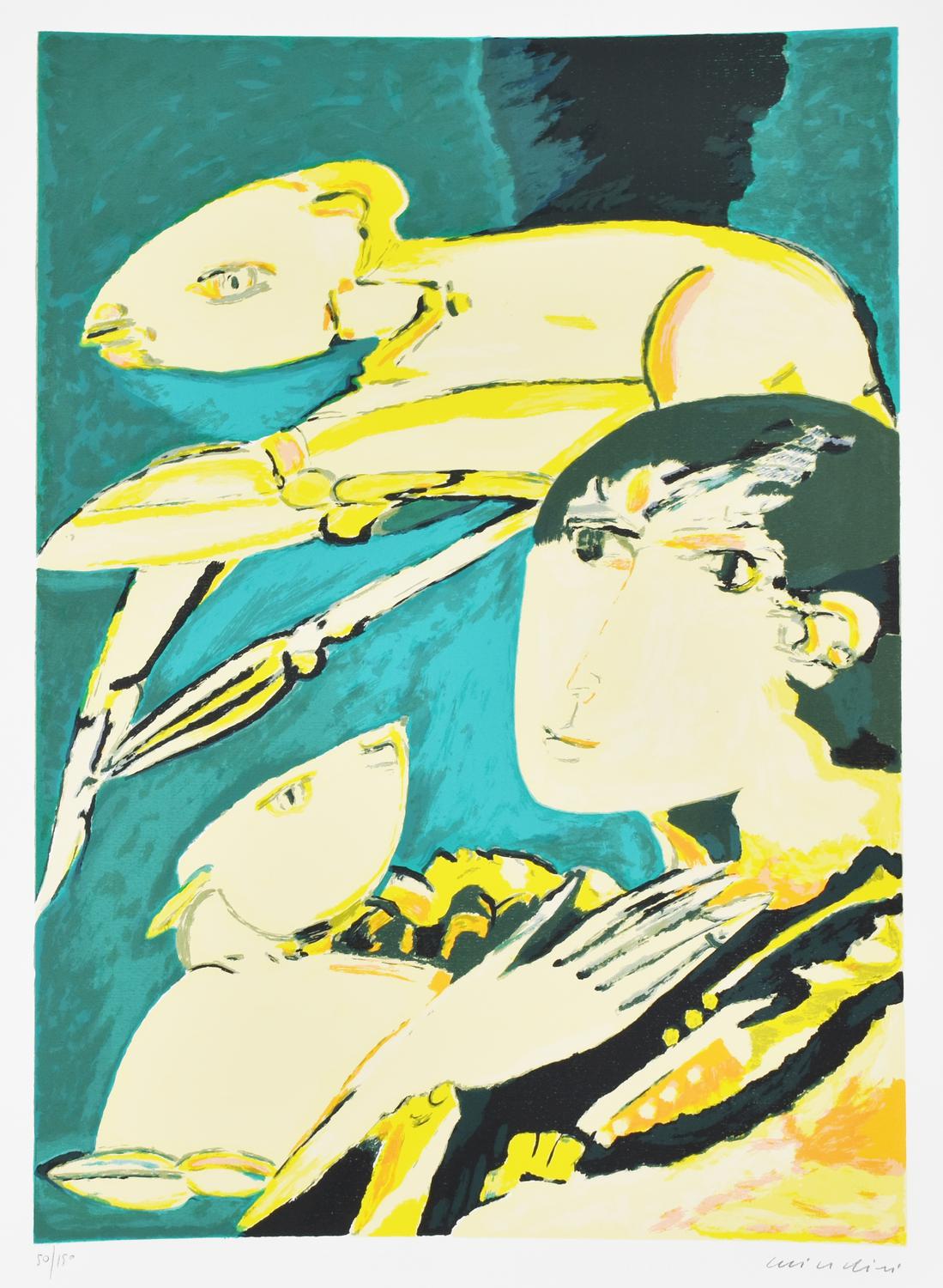 Remo Brindisi PASTORE litografia su carta Fabriano, cm 70x50 esemplare 50/150...