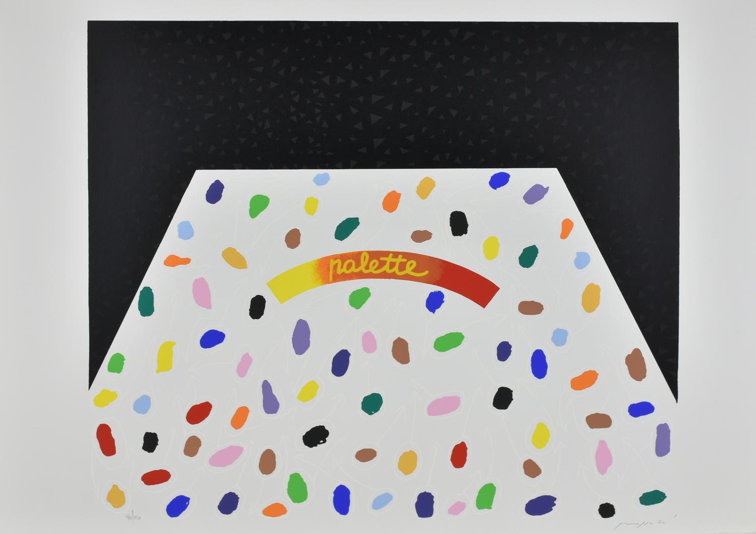Concetto Pozzati PALETTE serigrafia su carta, cm 50x70; es. 90/150 firma