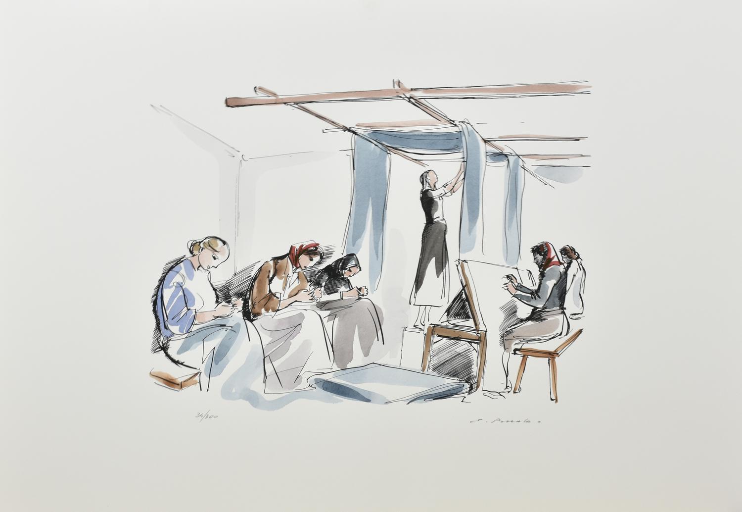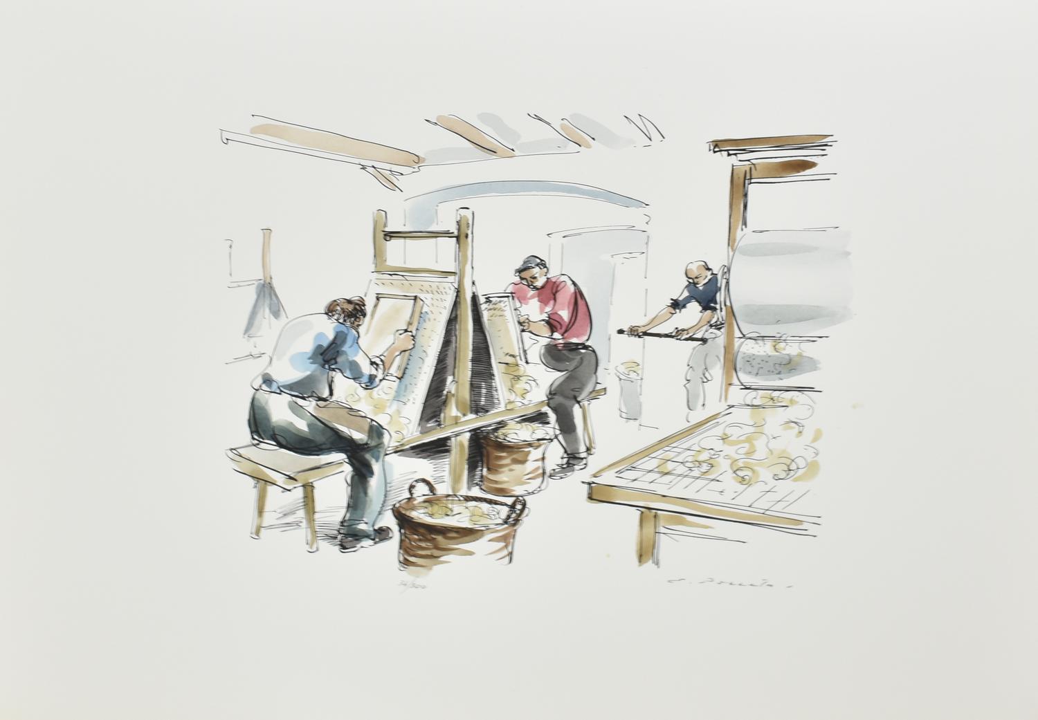cartella contenente 12 opere grafiche originali dipinte all'acquarello, cm 70x50; es. 34/300