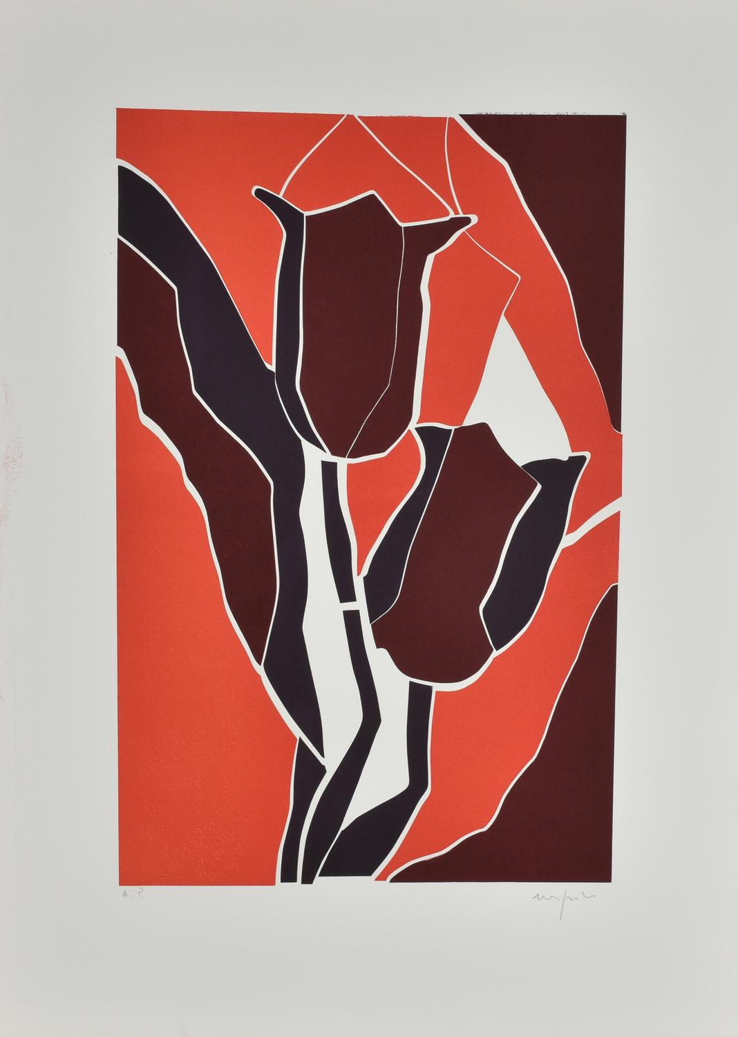 Lot 2 | Ugo Nespolo TULIPANI incisione su carta, battuta cm 51x33, su foglio cm...