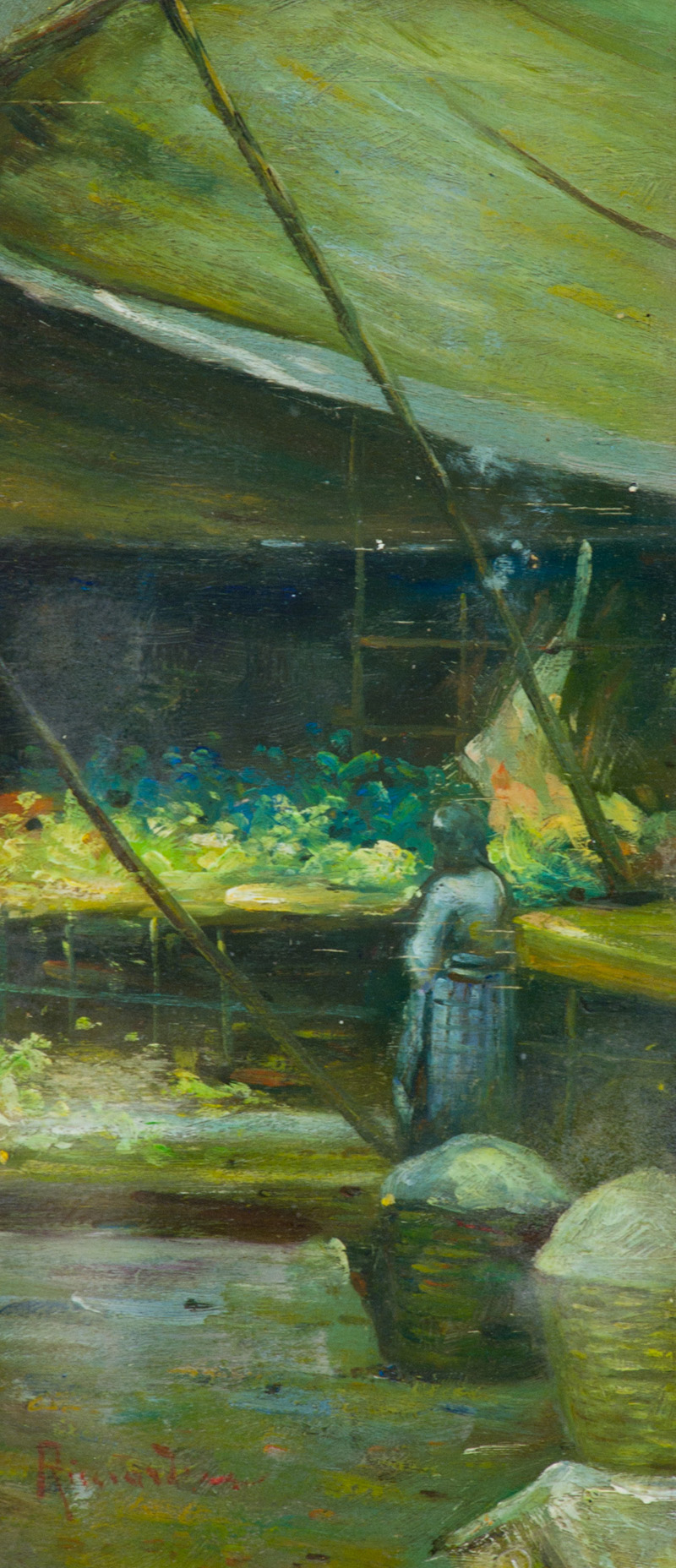 Lot 690 | Oscar Ricciardi Mercato Olio su tavola, cm. 31x14 Firmato in basso a sinistra.