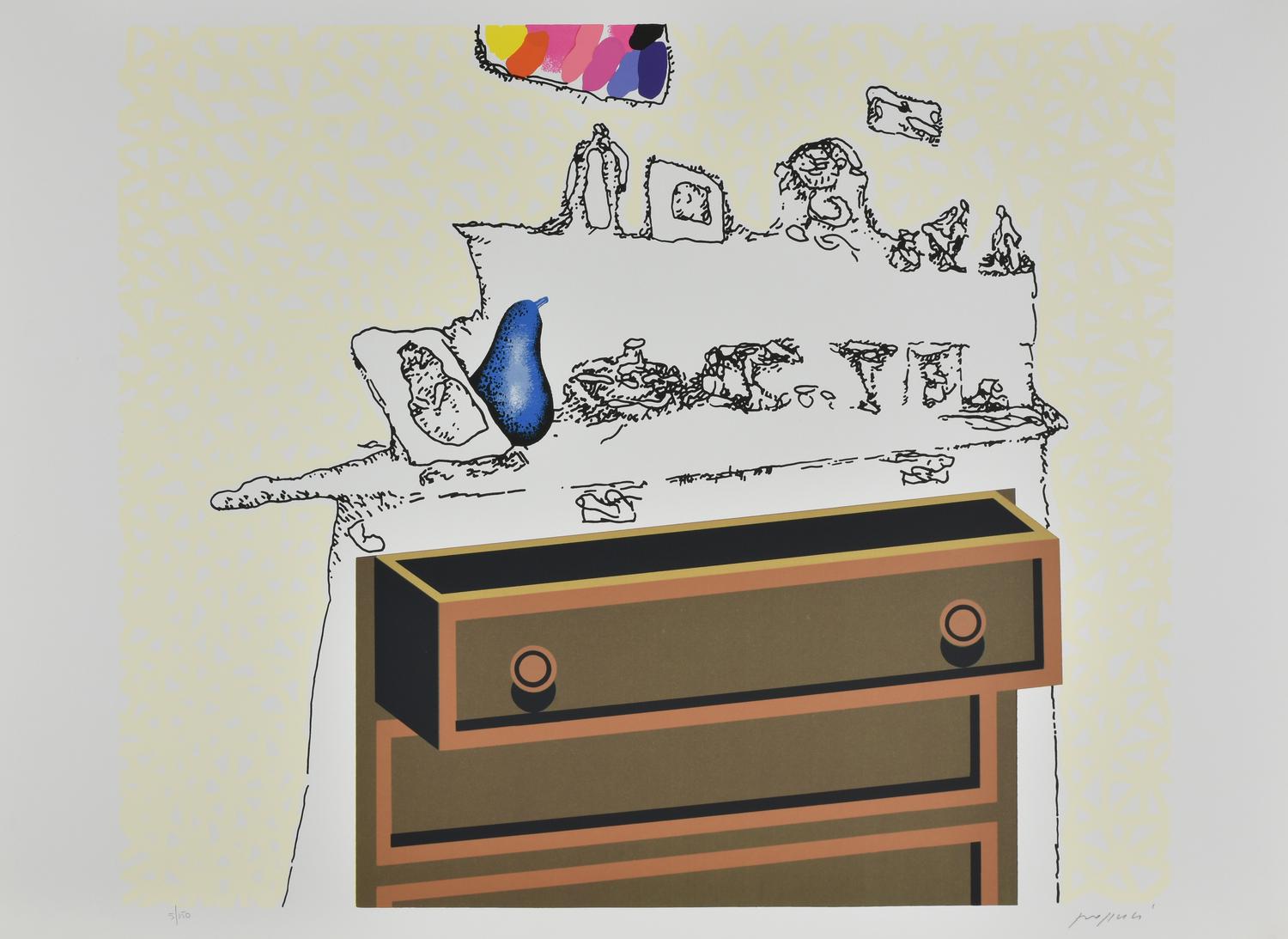 Lot 82 | Concetto Pozzati IL CASSETTO SOCCHIUSO serigrafia su carta, cm 50x70; es....