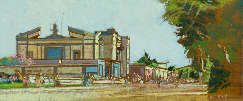 Raffaele De Rosa Veduta Olio su tavola, cm. 17,5x40,5 Firmato in basso a destra.