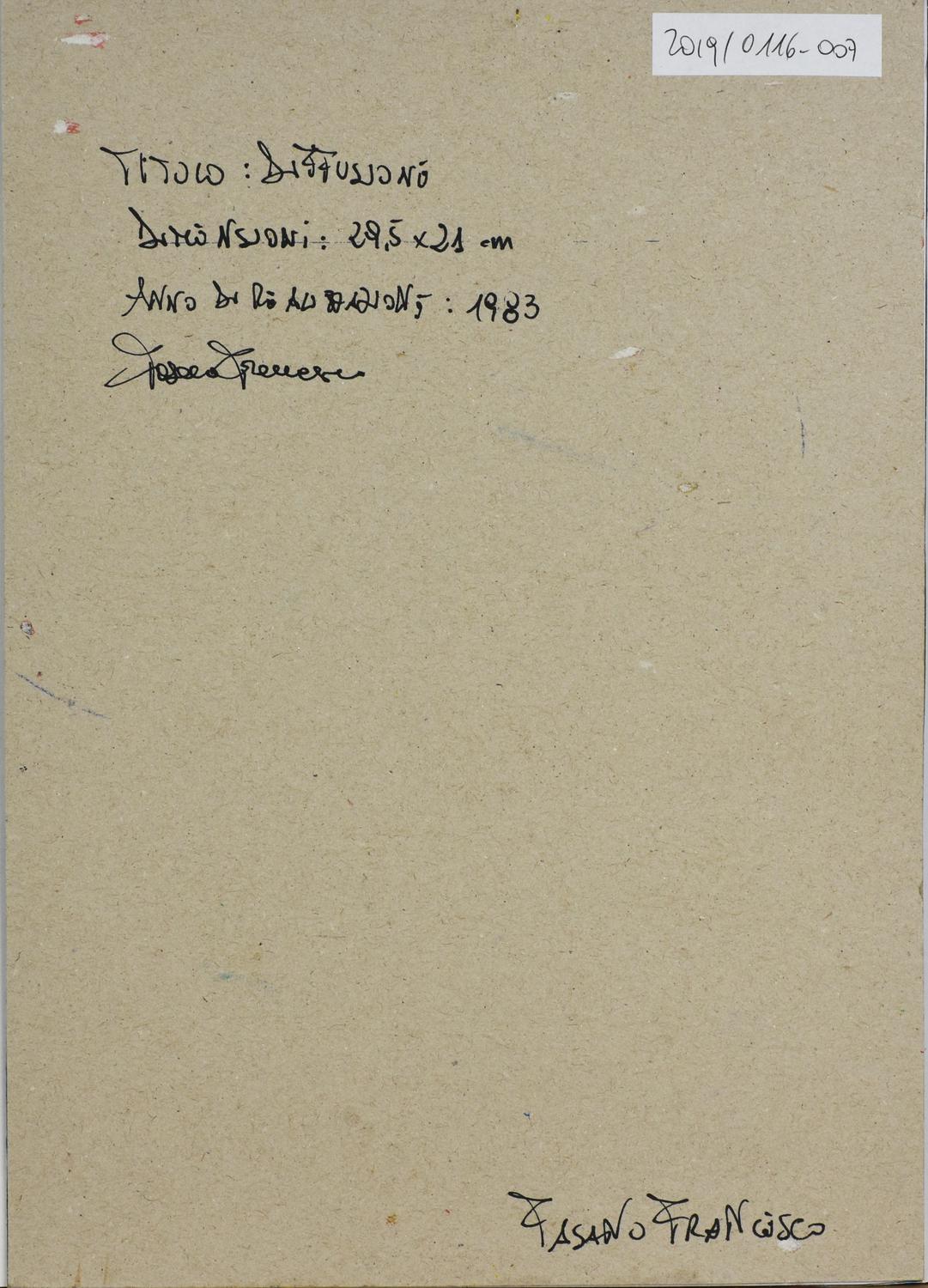 Francesco Fasano DIFFUSIONE tempera su carta, cm 29,5x21 sul retro: titolo,...