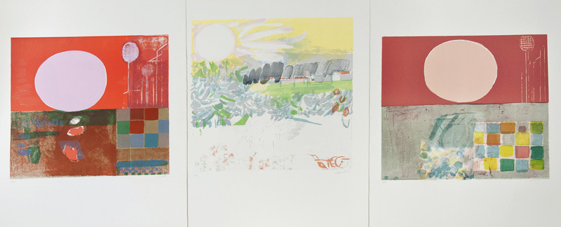 Bruno Saetti Il prato del mulino Cartella contenente cinque litografie su carta, cm. 70x50, es. 18/125 Tutte le Opere sono corredate da una lirica di Dino Carlesi. La cartella è edita da Graphis Arte. Firmate in basso a destra, tirate in basso a sinistra.