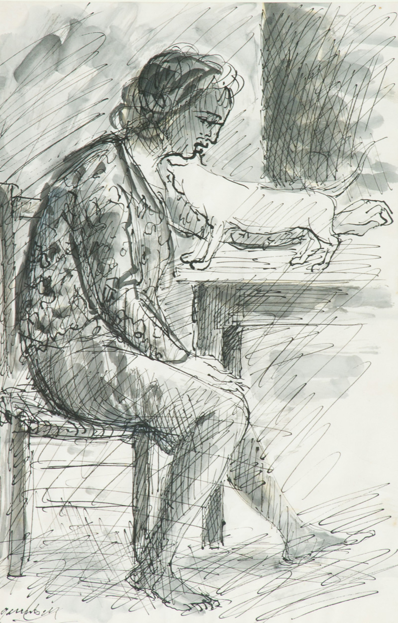 Lot 744 | Quinto Martini Donna con gatto China acquerellata su carta, cm. 32x21 Firmato...