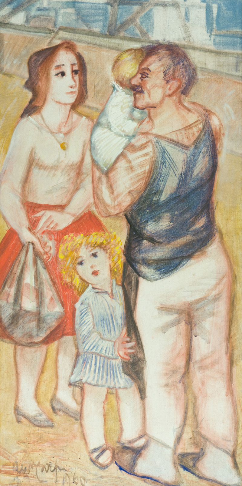 Aldo Carpi Famiglia, 1960 Olio su tela, cm. 120x60 Firma e data in basso a sinistra. Sul verso: etichetta del Comitato Nazionale "Mostra Omaggio dell'Arte Italiana al dolore innocente", Fondazione Pro juventute, Don Carlo Gnocchi, Milano, 1966.