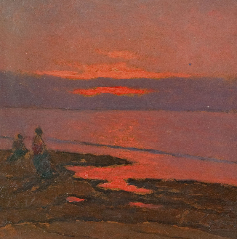 Giovanni Lomi Tramonto, 1965 Olio su faesite, cm. 13,5x13,5 Firmato in basso a destra. Sul verso: dedica a persona con firma e data.