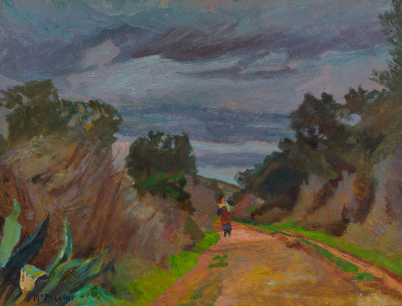 Mario Puccini Minaccia di tempesta Olio su tavola, cm. 32x42,5 Firmato in basso a sinistra. Sul verso: titolo; Timbro "Galleria Firenze"; Etichetta "Raccolta d'Arte Girolamo Ganucci Cancellieri", con descrizione. Bibliografia: Riccardo e Ferdinando Tassi, "Mario Puccini", Edizioni Il Torchio, Firenze, pag. 354, n° 639.