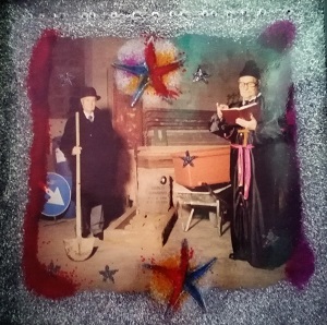 Omar Ronda (Portula, 1947 – Biella, 2017) "Carlo Gambino" frozen portrait, tecnica mista, plastica e foto cm 100x100 firma e titolo al verso