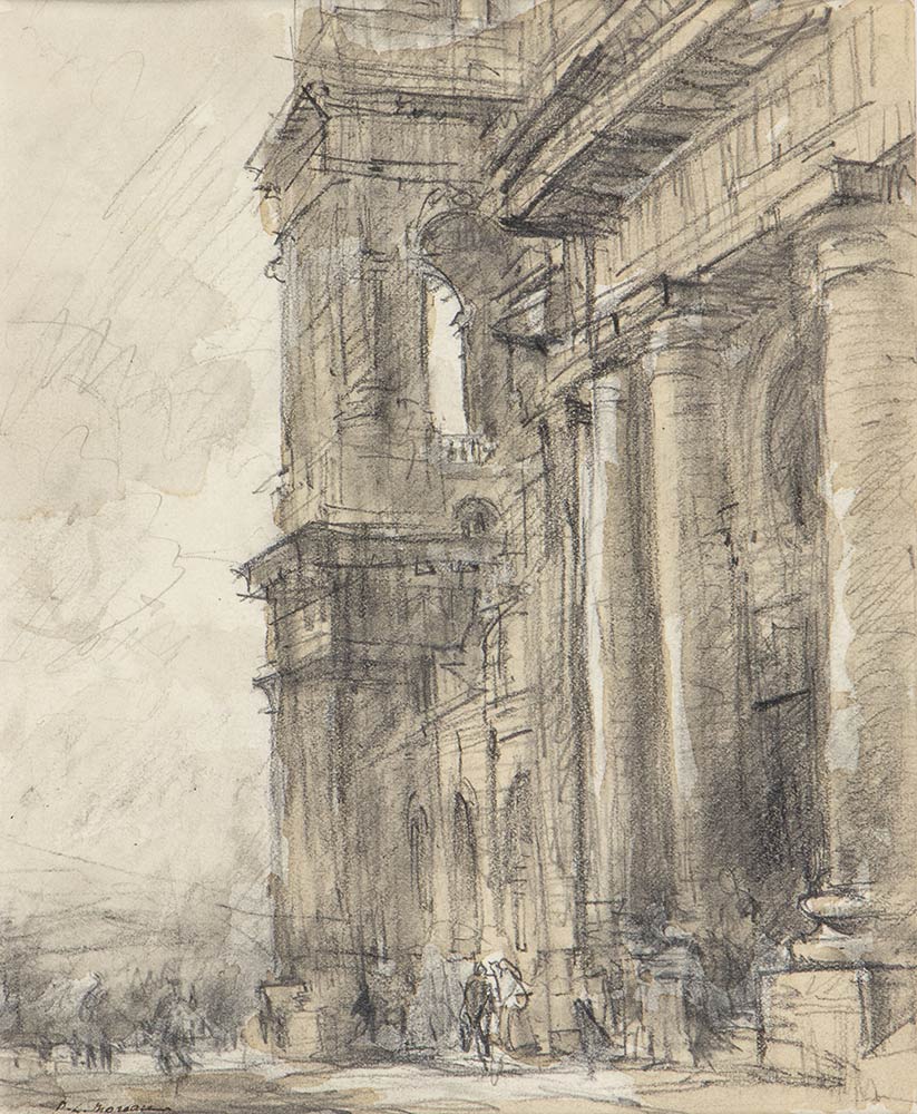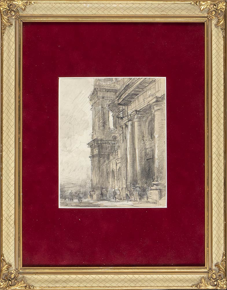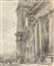 Profilo di facciata di chiesa monumentale con figure sottostanti (studio preparatorio per la facciata di Saint-Eustache a Parigi?)
