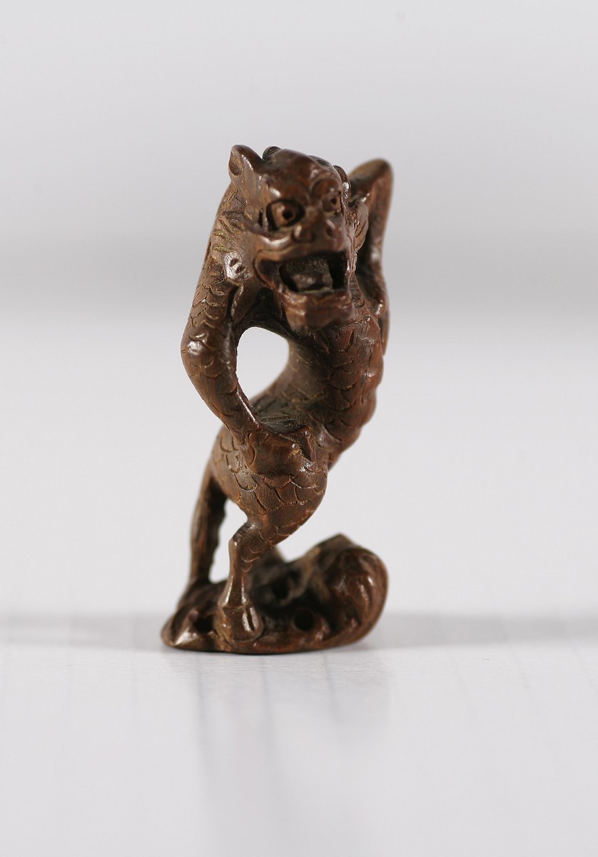MANIFATTURA GIAPPONESE DEL XIX SECOLO Netsuké raffigurante un drago eretto. Legno scolpito. Cm 2,00 x 5,00 x 2,00.