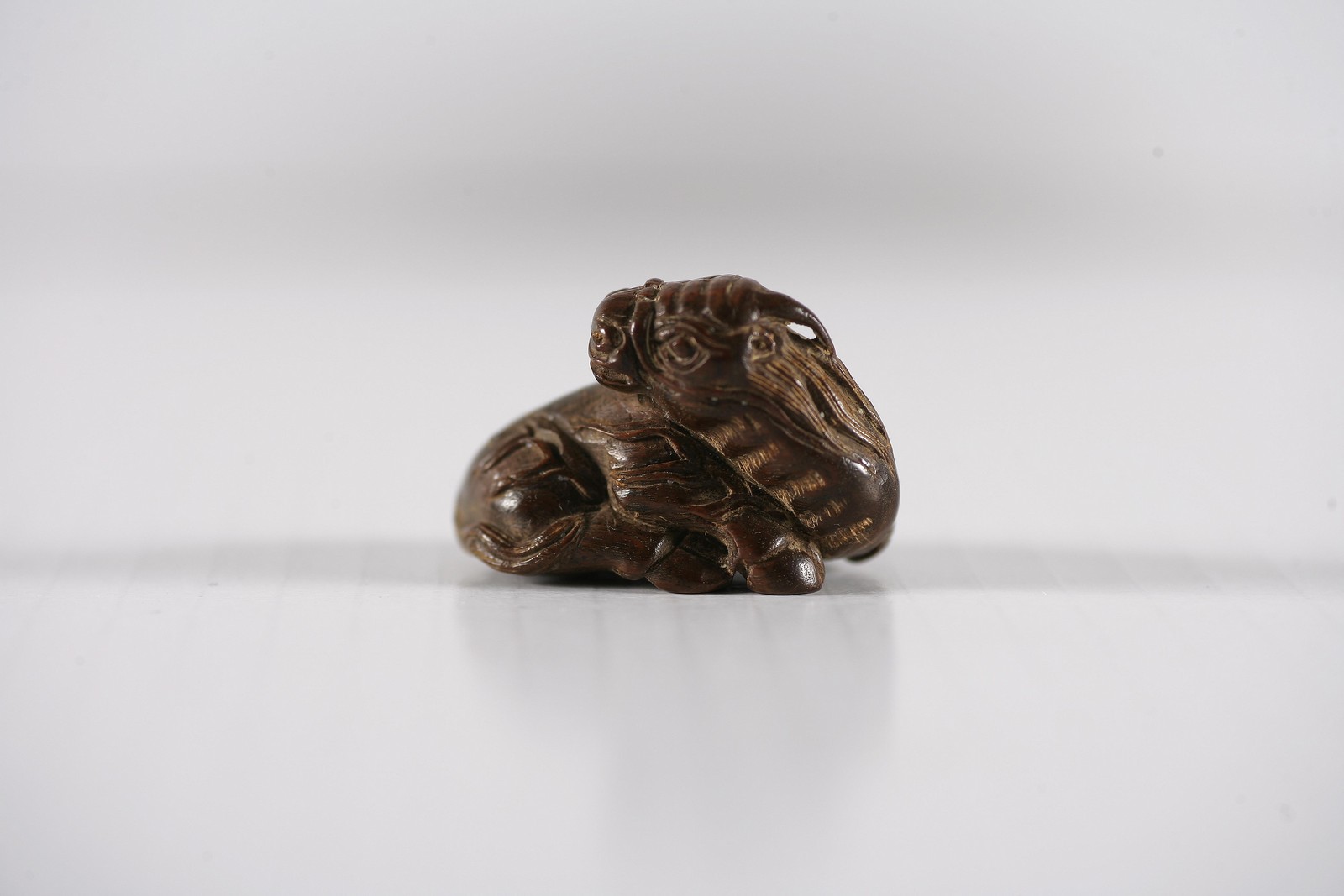 MANIFATTURA GIAPPONESE DEL XIX SECOLO Netsuké raffigurante un cavallo accovacciato. Legno scolpito. Cm 4,00 x 3,00 x 2,00.
