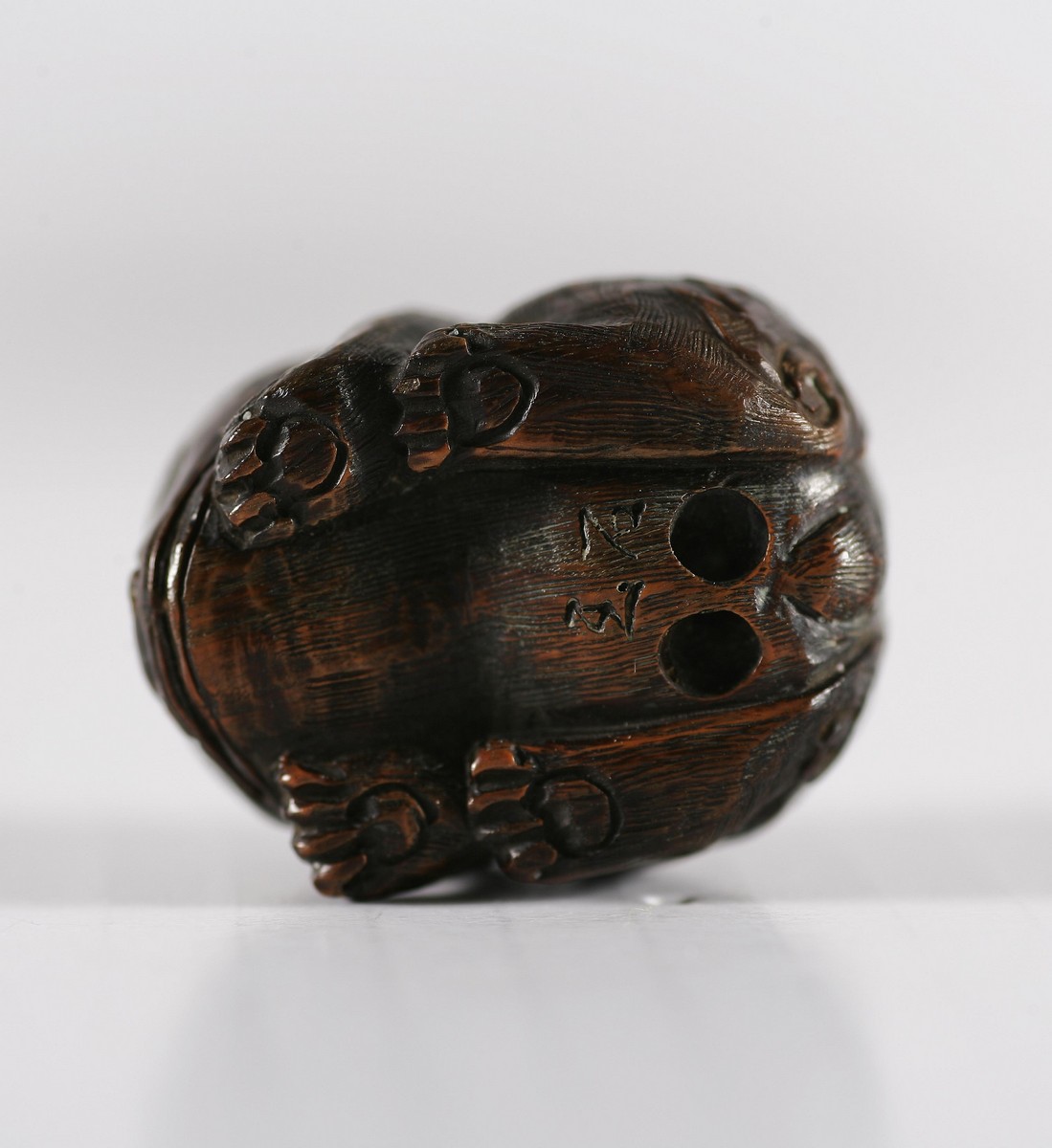 MANIFATTURA GIAPPONESE DEL XIX SECOLO Netsuké raffigurante un drago accovacciato. Legno scolpito. Cm 3,50 x 3,00 x 3,00.