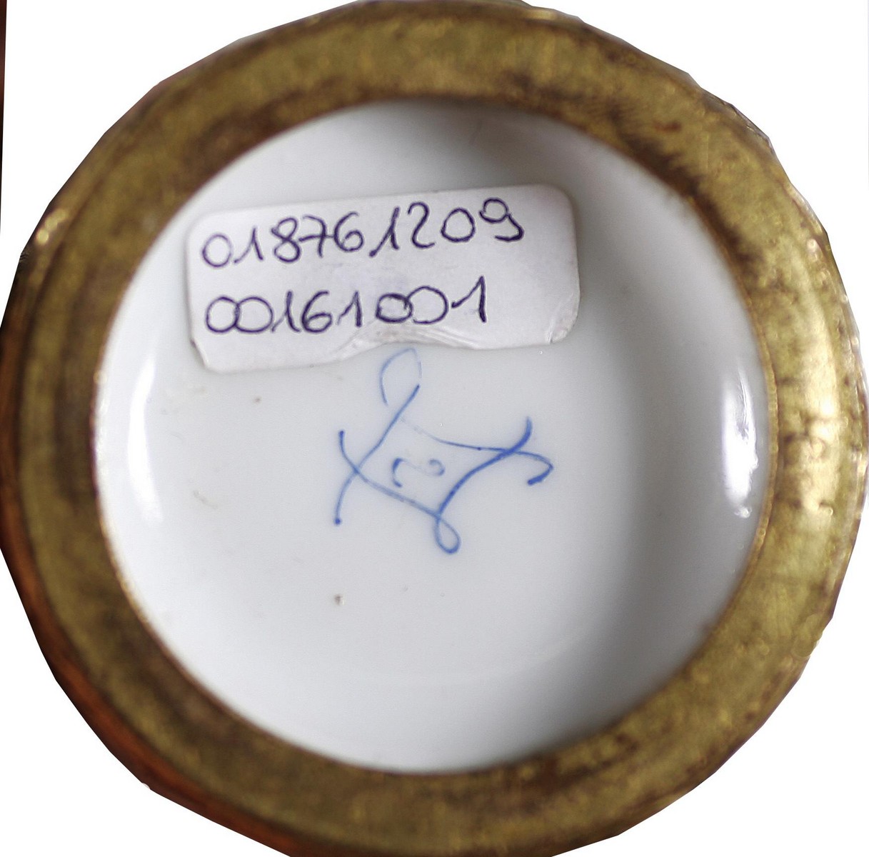 MANIFATTURA DI SEVRES Vasetto in porcellana con decorazioni ed applicazioni in metallo. Porcellana. Cm 13,80. Periodo Napoleone III (1852 - 1873).