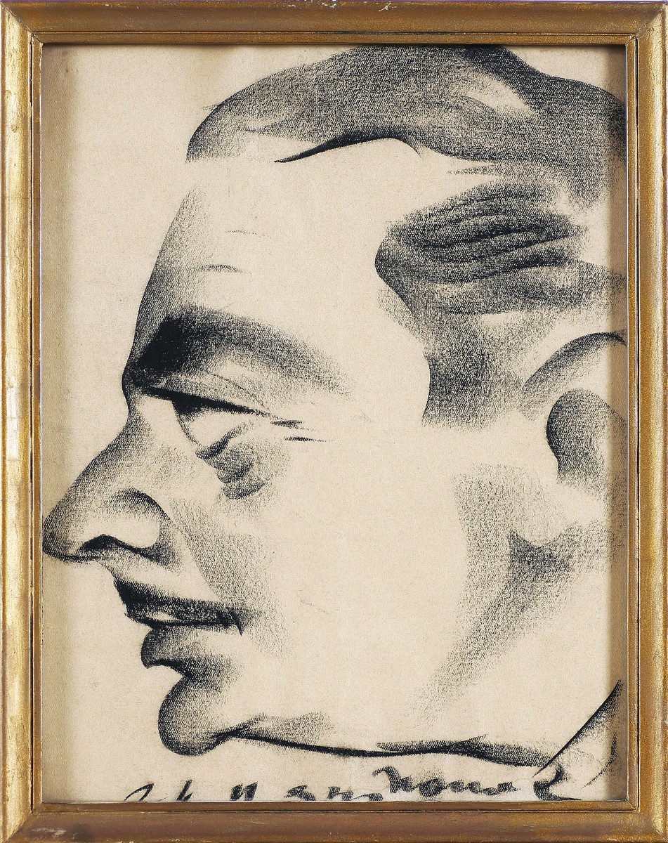 ANONIMO Profilo d'uomo con baffi. Carboncino su carta. Cm 20,00 x 27,50. Firma in basso a carboncino. Cornice presente