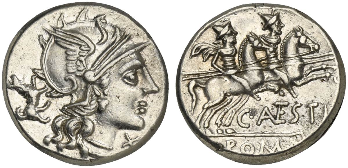 Lot 249 | C. Antestius, Denarius, Rome, 146 BC; AR (g 3,82; mm 17; h 5); Helmeted head...