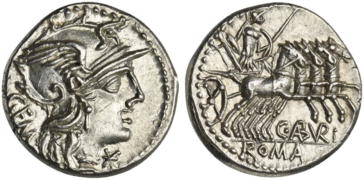 C. Aburius Geminus, Denarius, Rome, 134 BC; AR (g 3,88; mm 18; h 12);...