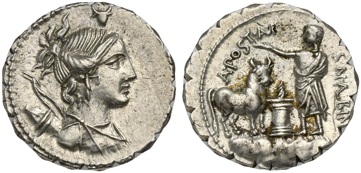 A. Postumius A.f. Sp.n. Albinus, Denarius Serratus, Rome, 81 BC; AR (g 4,01;...