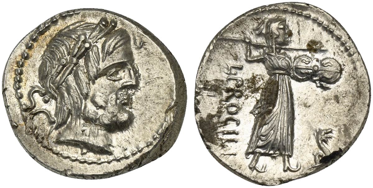 L. Procilius, Denarius, Rome, 80 BC; AR (g 3,71; mm 19; h 1); Laureate head...