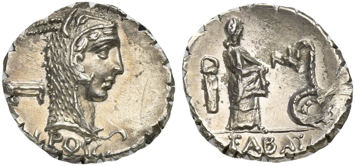 Lot 388 | L. Roscius Fabatus, Denarius Serratus, Rome, 64 BC; AR (g 3,82; mm 18; h 4);...
