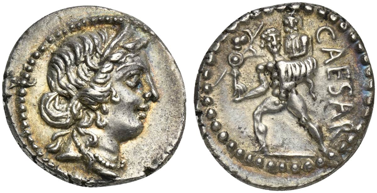 C. Julius Caesar, Denarius, Africa, 47-46 BC; AR (g 3,81; mm 17; h 6);...
