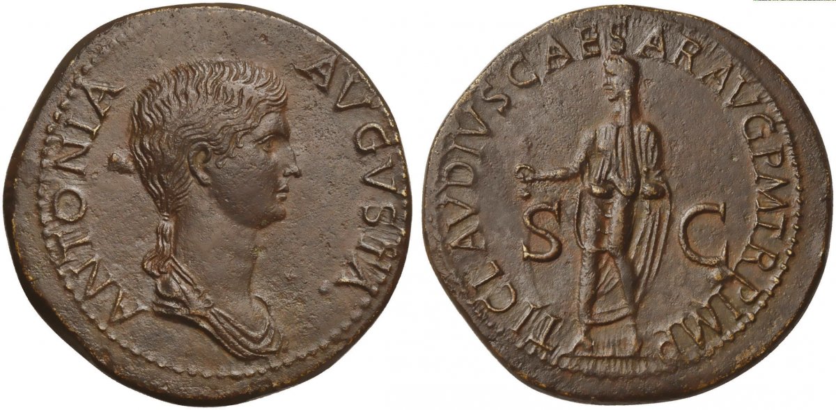 Antonia Minor, Dupondius struck under Claudius, Rome, ca. AD 41-50; AE (g...