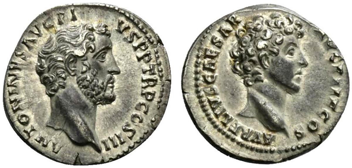 Antoninus Pius and Marcus Aurelius Caesar (139-161), Denarius, Rome, AD 140;...
