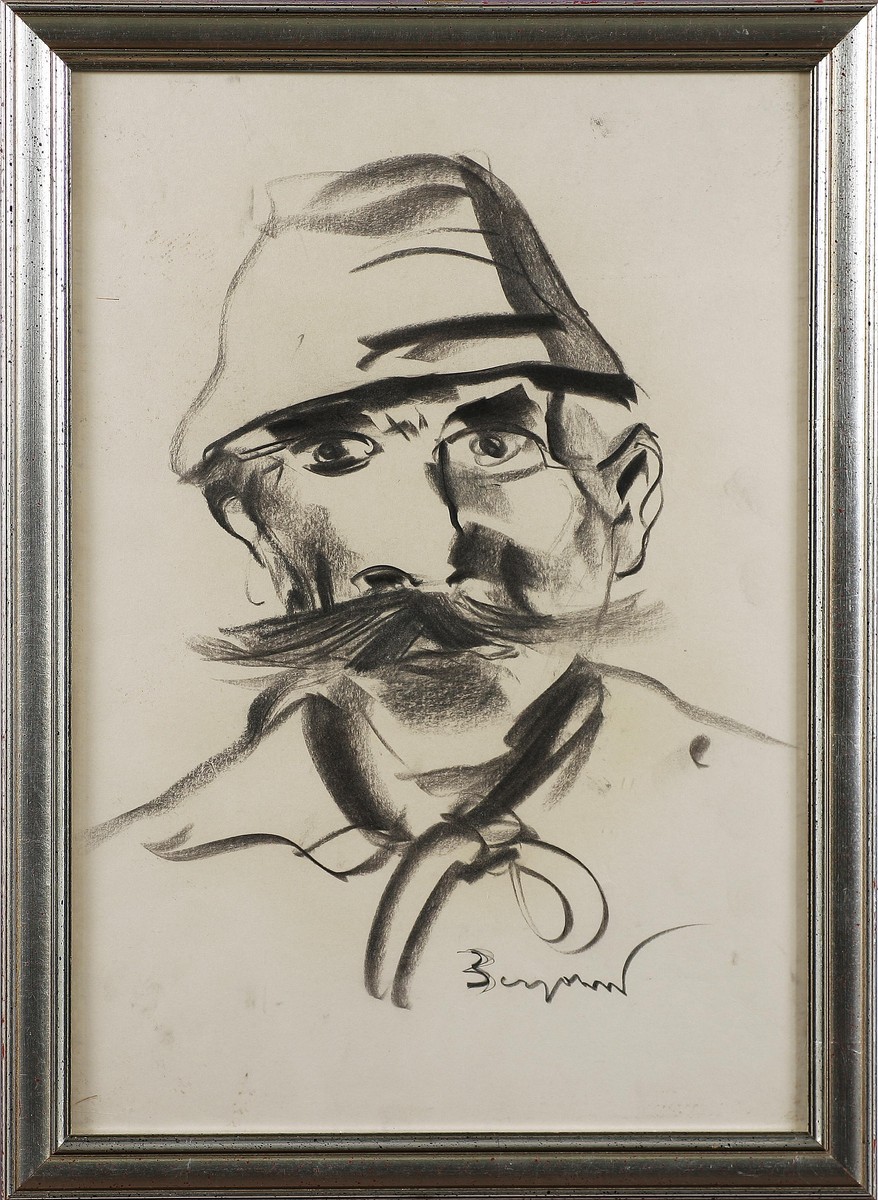 BERGOMI GIACOMO (1923 - 2003) Senza titolo. Carboncino su carta. Cm 35,00 x 50,00. Firma in basso a sinistra. Cornice presente