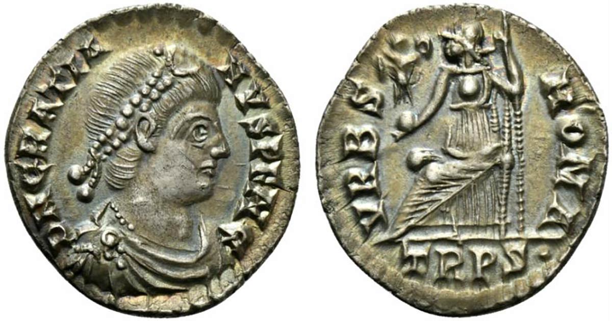 Lot 610 | Gratian (367-383), Siliqua, Treveri, AD 367-375; AR (g 2,05; mm 17; h 12); D...