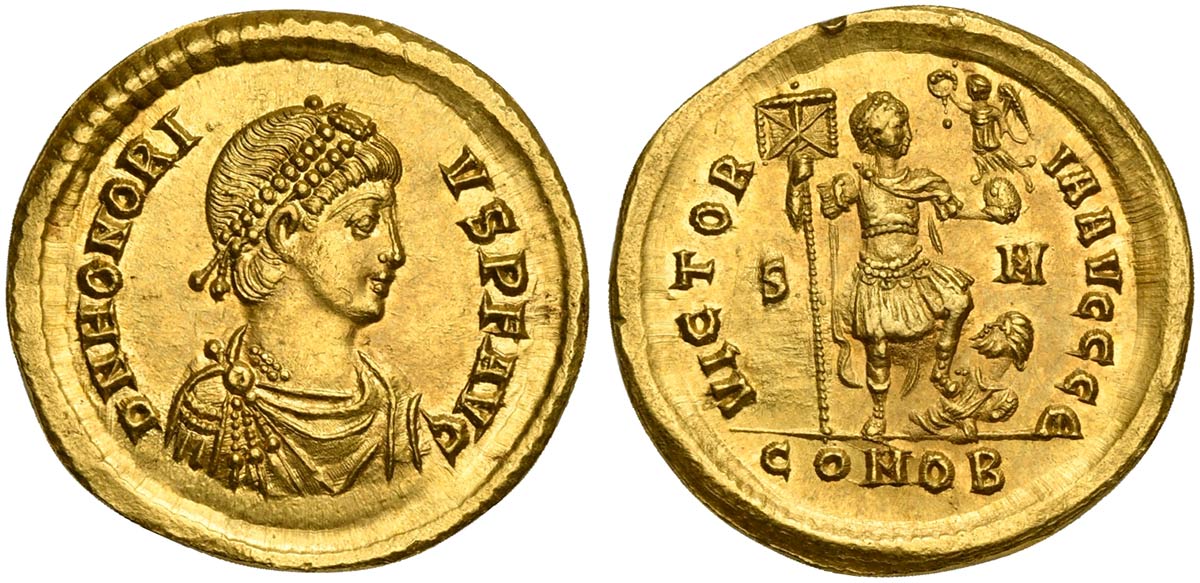 Honorius (393-423), Solidus, Sirmium, AD 393-395; AV (g 4,45; mm 20; h 6); D...