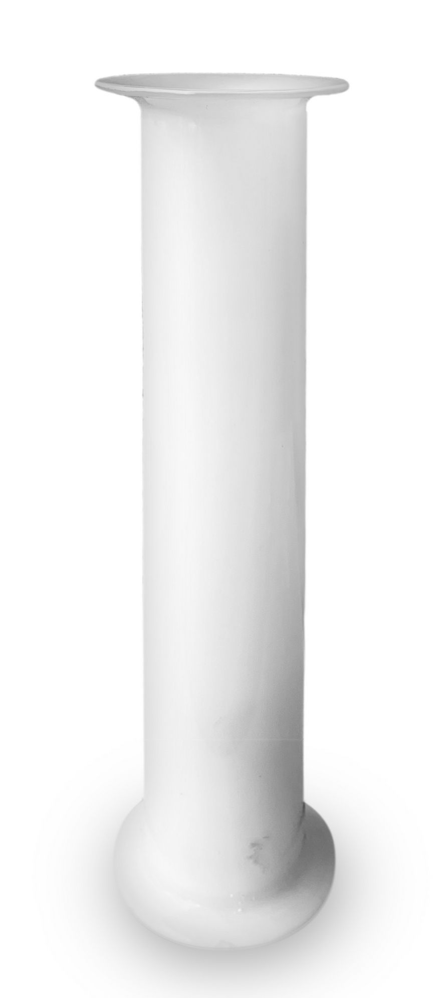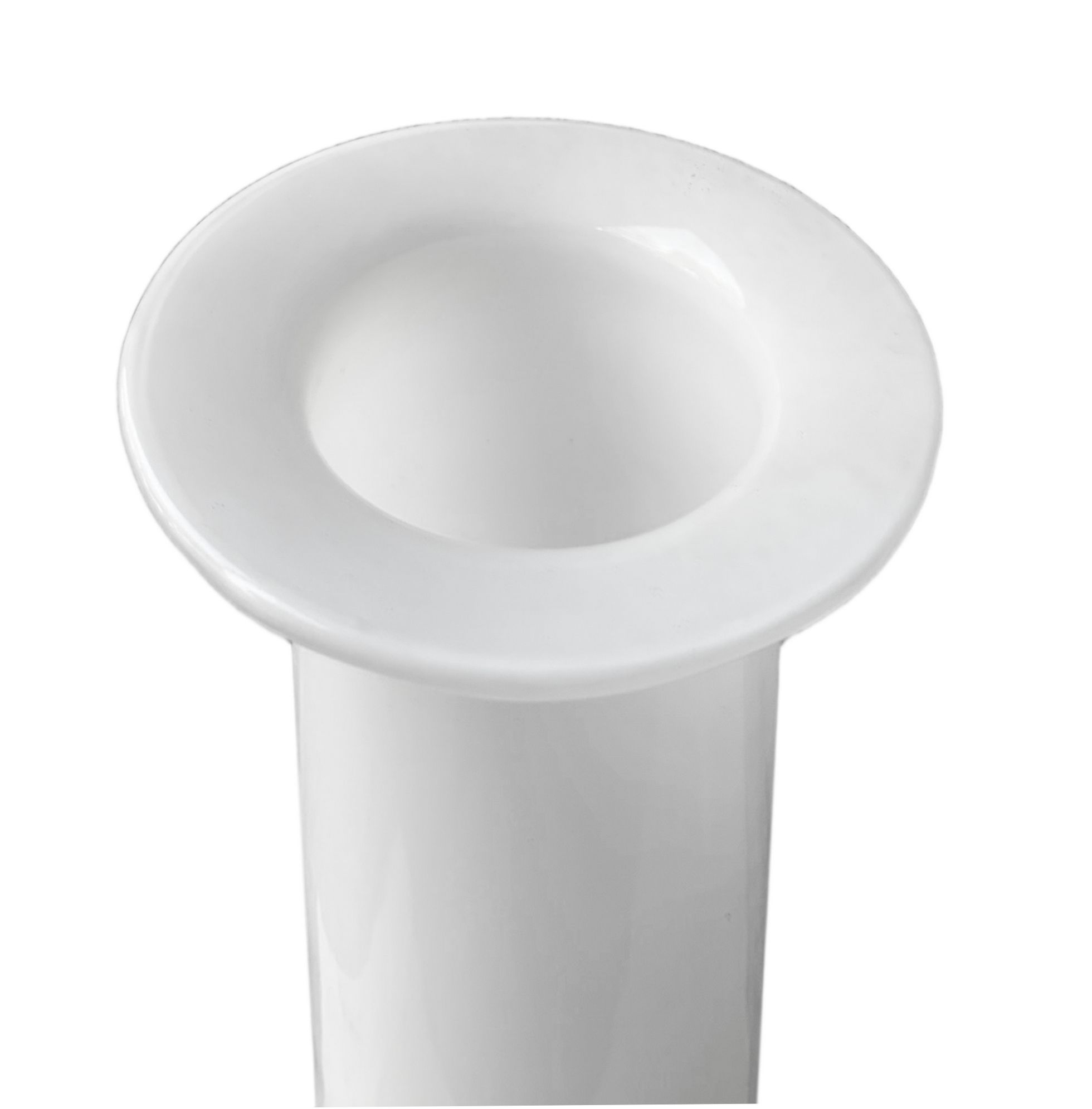 Vistosi Murano, disegno Luciano vistosi. Vaso cilindrico in vetro incamiciato bianco. Anni 60. H cm 41x 6
