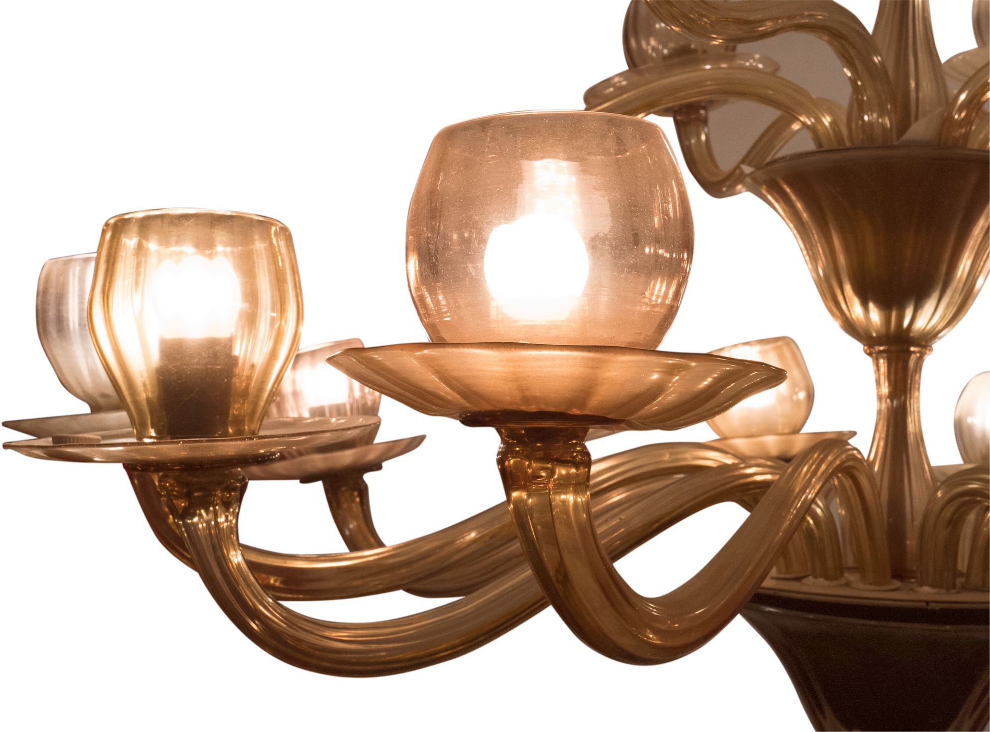Lampadario nello stile Venini color pagliesco. Cm 160x100