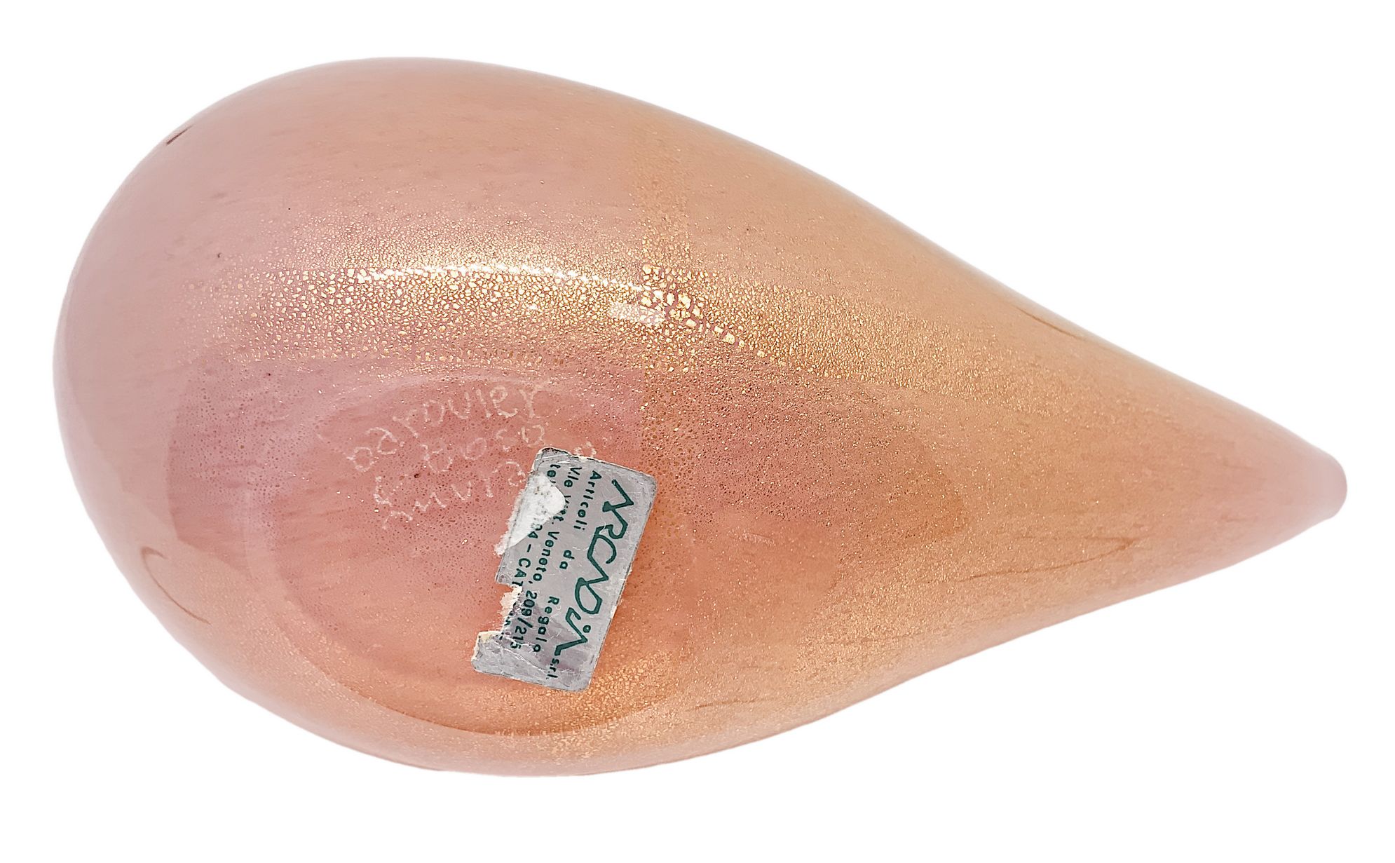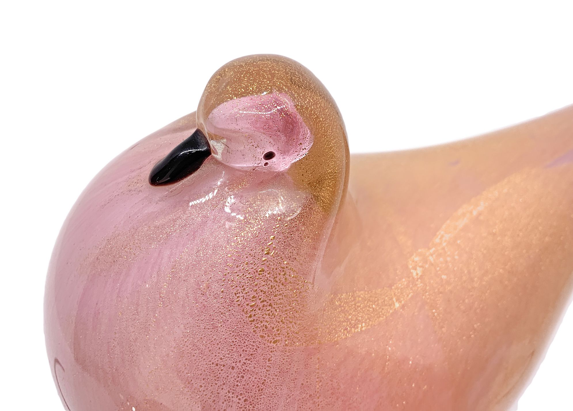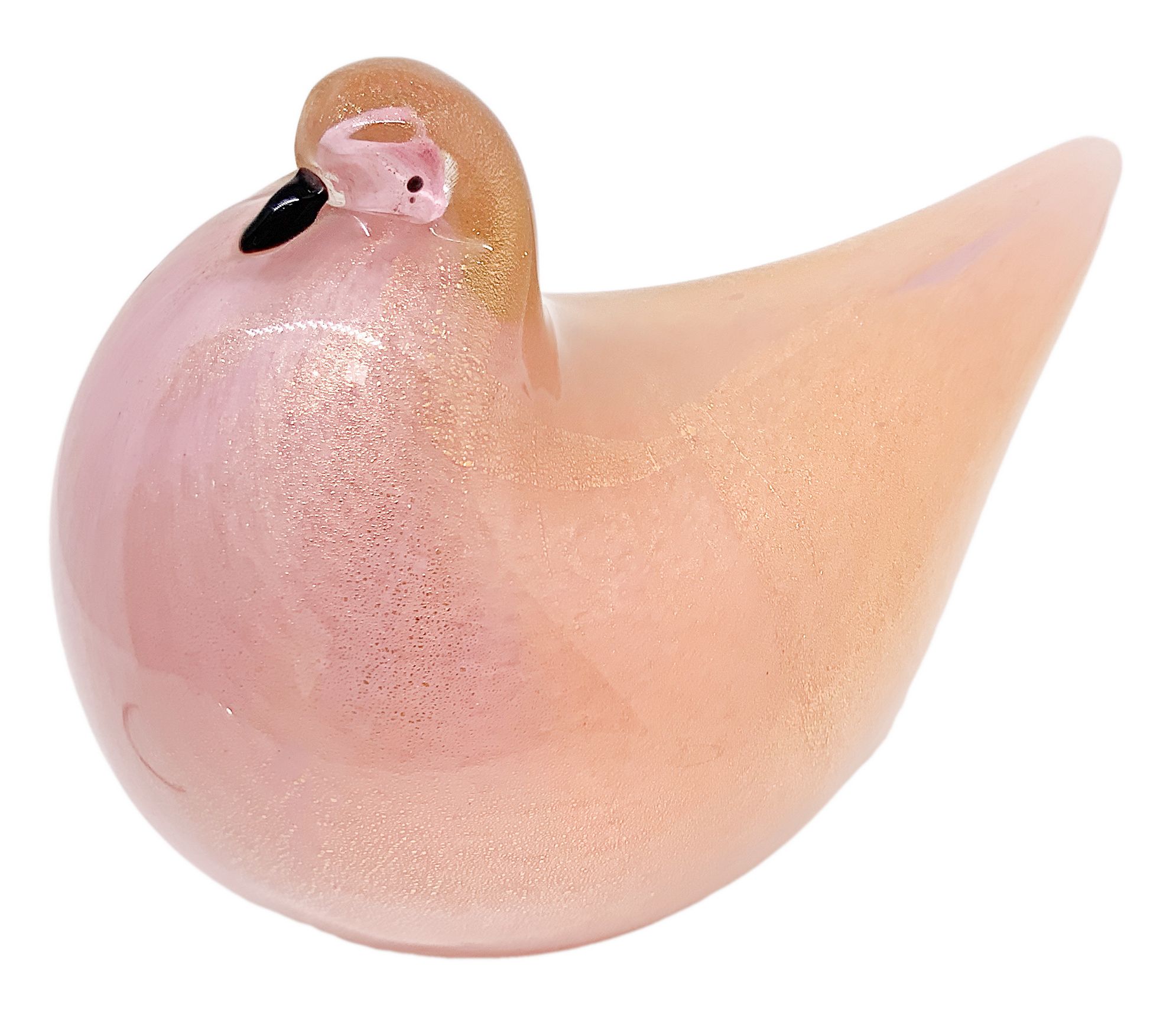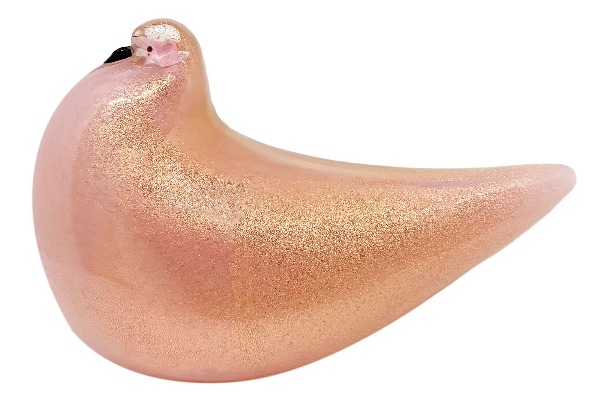 Colomba della serie Tepore. Vetro sommerso con inclusione di foglia d’oro e applicazioni in pasta vitrea. Produzione Barovier & Toso 1980 ca Firmato a punta di diamante. Lunghezza cm 20