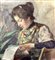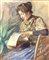 Gouache raffigurante giovane donna che legge. A. Abate (Roma, 1946 – Roma,...