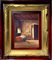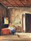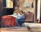 Olio su cartone telato raffigurante scena d’interno, madre con bambino, Mario...
