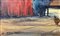 Olio su cartone telato raffigurante scena d’interno, madre con bambino, Mario Fattori (1930), Cm 25x35