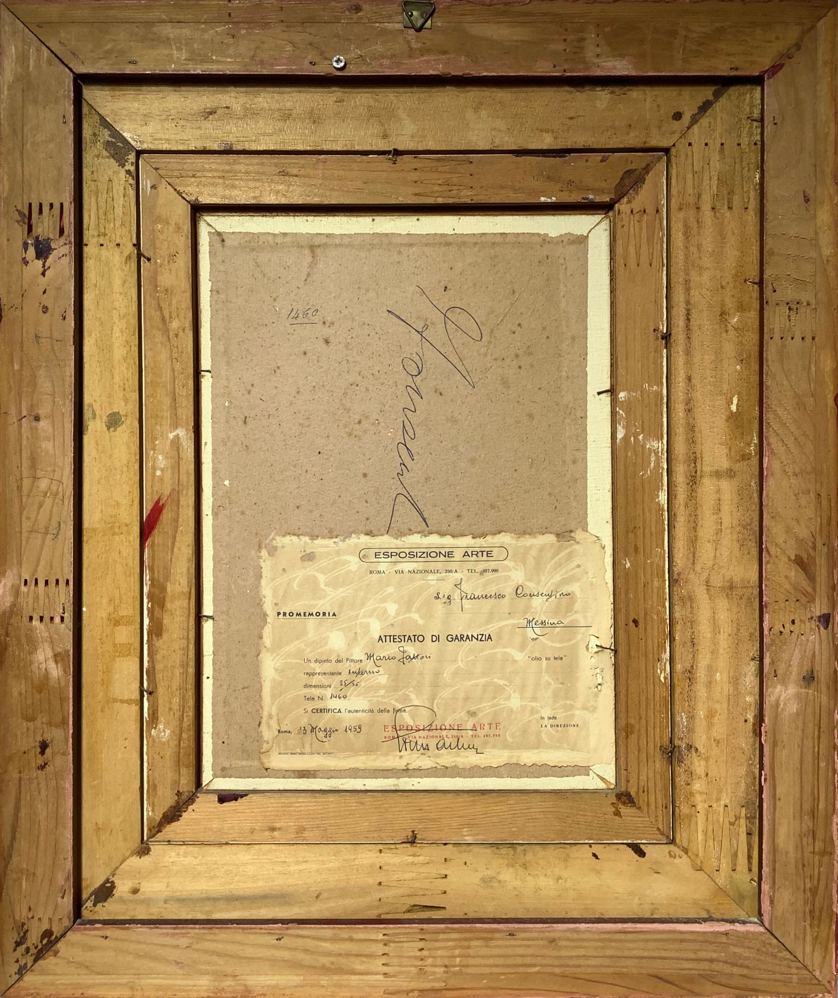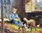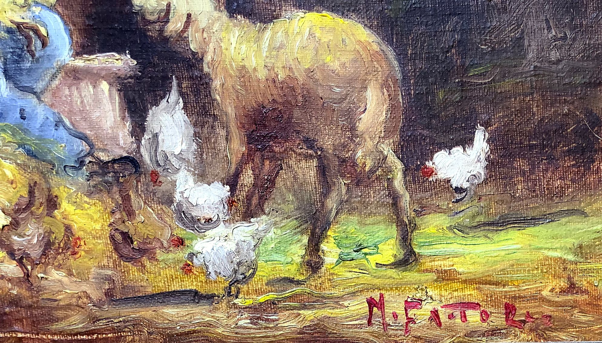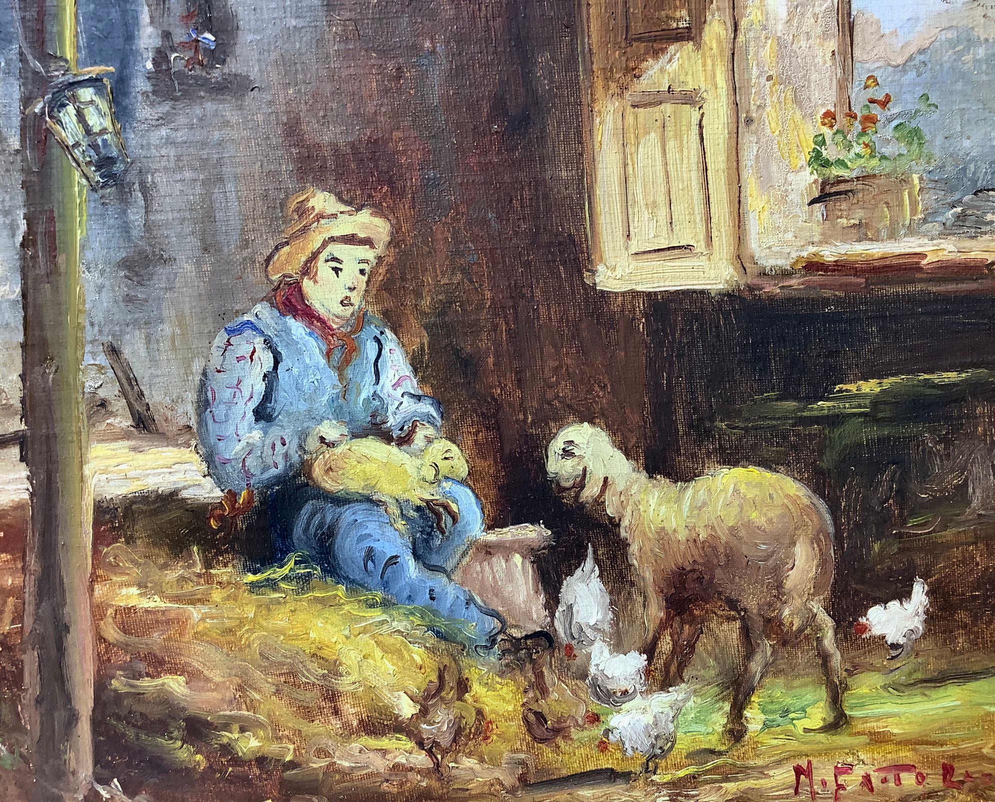 Olio su cartone telato raffigurante ragazzo in una stalla, Mario Fattori...